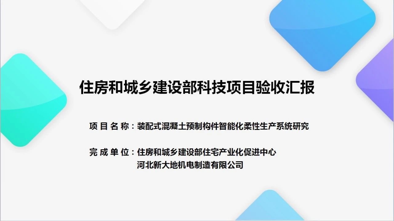 2018年9月29日,受住房和城鄉(xiāng)建設(shè)部(以下簡(jiǎn)稱“住建部”)建筑節(jié)能與科技司委托,由住建部科技與產(chǎn)業(yè)化發(fā)展中心與河北新大地機(jī)電制造有限公司共同承擔(dān)的部科學(xué)技術(shù)計(jì)劃“裝配式混凝土預(yù)制構(gòu)件智能化柔性生產(chǎn)系統(tǒng)研究”項(xiàng)目驗(yàn)收評(píng)審會(huì),在住建部召開。