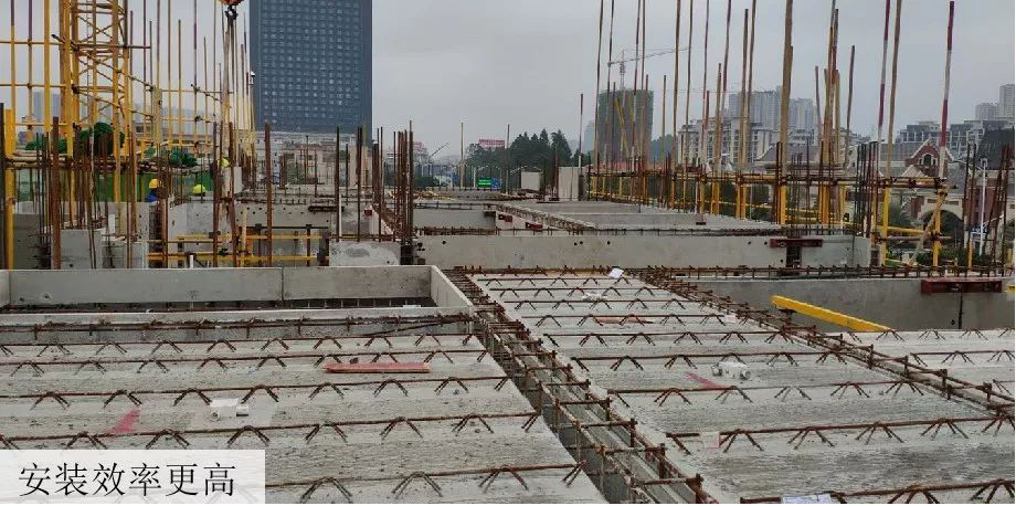 3、施工現(xiàn)場(chǎng)混凝土一次性澆筑,一體化的籠模預(yù)制件形成自平衡體系承受施工荷載,大幅簡(jiǎn)化施工支撐,施工過(guò)程無(wú)需拆除模板。PI體系在整體性和連接安全性與現(xiàn)澆混凝土結(jié)構(gòu)完全一致,適用于各種結(jié)構(gòu)體系和多層、高層、超高層結(jié)構(gòu)。