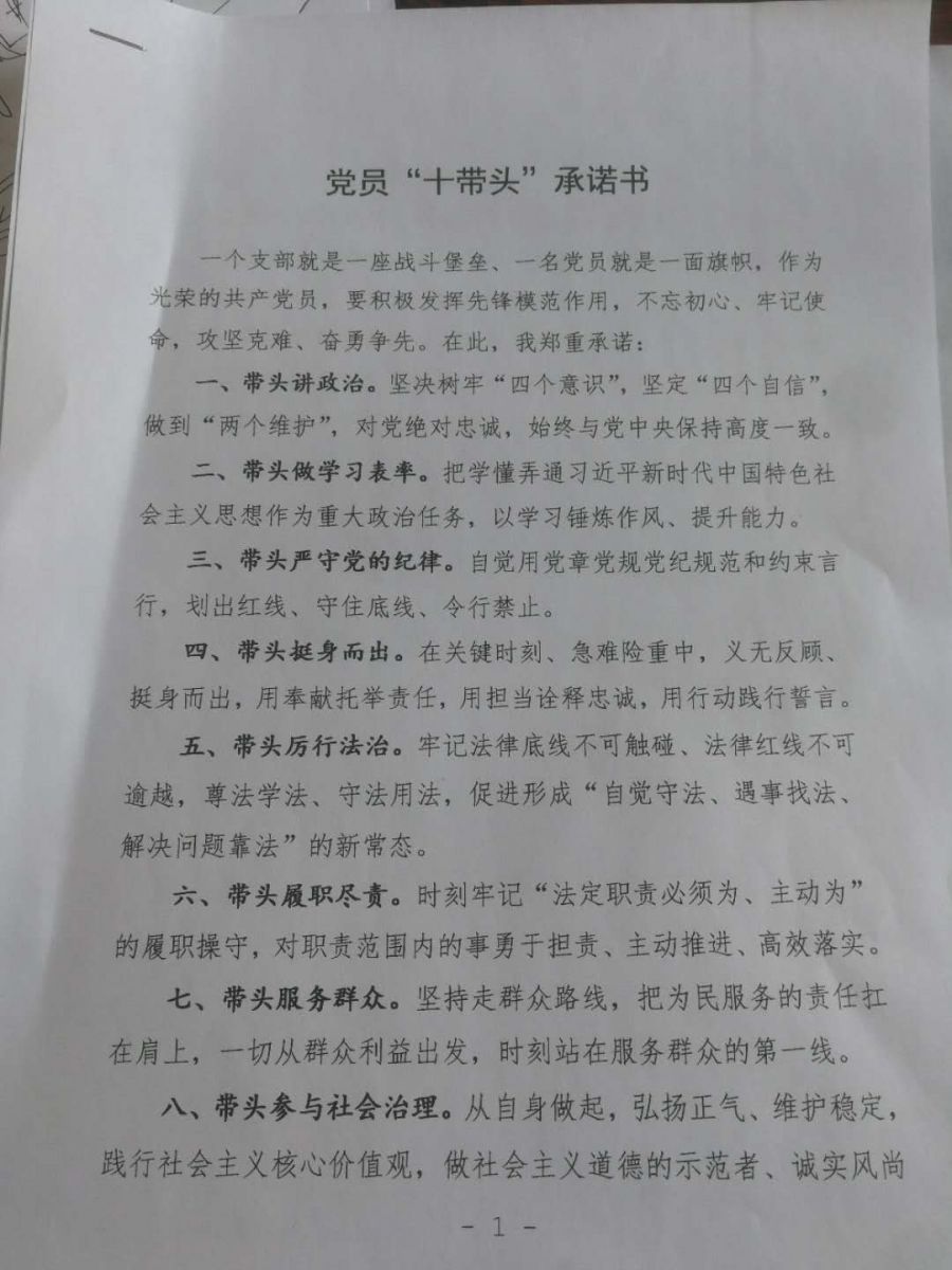 河北新萊曼黨員簽“十帶頭”承諾書,不忘初心牢記使命,認真履行基層黨支部規(guī)定和職責,努力貫徹黨的基本路線方針政策,基層支部黨員緊密和公司組織聯(lián)系起來、有效組織起來,形成具有統(tǒng)一意志、統(tǒng)一紀律、統(tǒng)一行動的整體,形成一個有戰(zhàn)斗力有凝聚力的團隊。