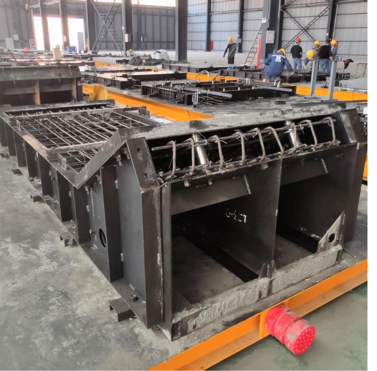 河北新大地秉承“制造精品設(shè)備,構(gòu)筑美好未來”的理念,并結(jié)合客戶的實際需求,針對生產(chǎn)線方案及設(shè)備進(jìn)行了大量的定制化設(shè)計工作。此次設(shè)計的生產(chǎn)線包含高速魚雷罐(可與攪拌站聯(lián)動)、螺旋式布料機、低噪音三維振搗臺、大型養(yǎng)護窯、模臺橫移車、碼垛車、污水清理車等主要設(shè)備,其中大型養(yǎng)護窯在夏季可不用蒸汽進(jìn)行構(gòu)件養(yǎng)護,降低了構(gòu)件的養(yǎng)護成本,并且采用了新的不銹鋼窯門結(jié)構(gòu),縮短了窯門開啟時間,并大大加強了防銹能力。